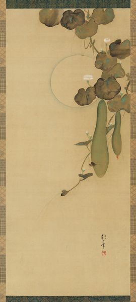 Curator: This is Ohara Koson’s *Sprinkhanen op rijstplanten*, or “Grasshoppers on Rice Plants,” a woodblock print created sometime between 1900 and 1936. Editor: It's incredibly delicate. The subtle gradations of colour create a serene, almost melancholic atmosphere. The grasshoppers punctuate the stillness. Curator: The composition is brilliant in its simplicity, isn't it? Koson's masterful control of line and form is quite evident. Note the careful arrangement of the rice stalks creating dynamic lines throughout the plane. Editor: Agreed, but I'm also thinking about the labour involved in its creation. The crafting of woodblocks requires highly skilled artisans to transfer the artist's design to the block and then carve with immense precision. This collaborative element makes it special. Curator: Indeed, ukiyo-e prints were a collaborative enterprise. Now, regarding subject matter, we cannot ignore the historical and environmental context surrounding Koson’s work; in this artwork, a tension emerges, reflecting both nature's beauty and agriculture practices and labour-intensive means to secure crops. Editor: And thinking about the natural pigments used; where did they source them? How sustainable were they? Were any hazardous to the artisans that mixed or applied them to the wooden printing blocks? And these details aren't often part of formalist discussions. Curator: I concede your point. These prints, intended for mass consumption, connect us to global trade routes that influence the materiality of production. Ultimately, that intersection gives way to discourse regarding art’s status itself. Editor: It adds layers of meaning to a seemingly simple composition, doesn't it? These "simple" scenes often carried immense social and cultural significance within the Edo period and onward. I suppose there is more at play here than nature imitation. Curator: I'd say it provides a space to engage on topics of environment, material culture, and labour in an increasingly industrialising world, which is certainly compelling. Editor: Exactly, and I believe it challenges us to consider not only what we see, but how it was brought into being and consumed in its era. Thank you for enriching the conversation, offering a fresh perspective on the subject.