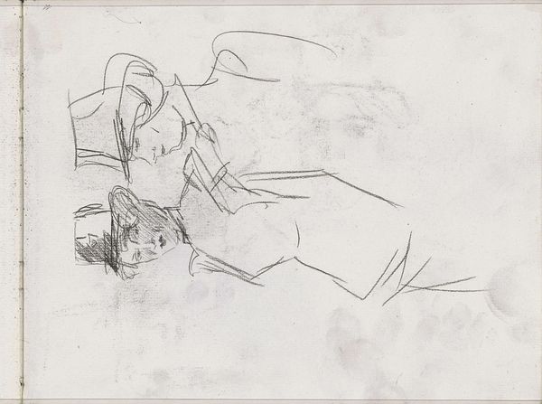 Editor: Here we have Engelbert Gminska’s drawing, "Reading Girl," crafted with pen and ink on paper. The stark lines and simple composition create a feeling of quiet intimacy, as if we are glimpsing a very private moment. What strikes me most is the apparent ease of the rendering, its seemingly casual nature. What do you see in this piece? Curator: I see a negotiation of labor, literally. The means of production are evident: pen, ink, paper. These accessible materials democratize art-making, shifting value away from expensive oil paints and rarefied techniques toward a more commonplace form of creative expression. Think about who had access to these materials, who could afford the time to practice with them, and then, the final question - how was the artist situated to be in contact with his subject. Editor: That's interesting. I hadn’t considered the socioeconomic implications of the materials themselves. So, the choice of pen and ink is significant, almost as a statement? Curator: Precisely! And look at the subject matter – a woman, presumably middle class, leisurely reading. Whose stories are we reading, who has access to learning - the ink, the tools and education? What's she reading, what impact might this scene, being a product of line drawings - being almost architectural in nature- how did this then inform his larger project? The context of production becomes paramount. Is this sketch just a study or does it act as social commentary as well? Editor: So it’s not just about the girl reading, but the accessibility and the democratization of art and learning itself? Curator: Absolutely! And even the concept of a “sketchbook” – a place for practice, experimentation, and private exploration. It blurs the lines between “high art” and the everyday act of mark-making. Editor: That's really shifted my perspective. I was so focused on the subject that I missed the nuances in materiality and what they represent. Thanks for clarifying the process for me. Curator: My pleasure. Considering the process makes you view art, not only by what it depicts, but who is being depicted. It becomes about whose stories and histories can be materially known.
