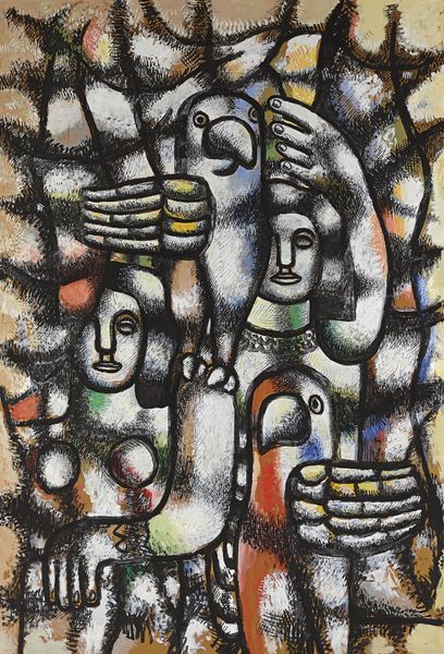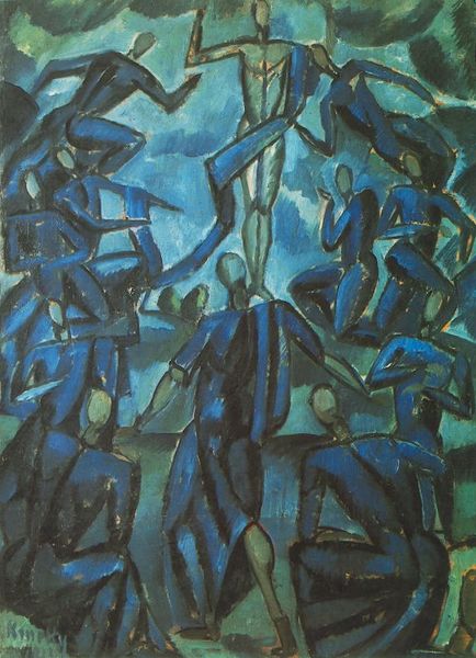 Fernand Léger made "Acrobats in Gray" with oil paint, exploring how we see and experience bodies. The gray he uses isn't just gray; it’s alive, shaded from light to dark, almost like a sculpture cast in an unusual material. I’m really drawn to how Léger uses the paint in layers, so the forms are both flat and rounded, the surface of the gray is smooth. It's as if the bodies are made of metal tubing, bending and fitting together. Look at the hand reaching up towards the top left, fingers splayed, it feels like a moment frozen in time. You can see a similar approach in the work of Picasso or Braque at this time, but Léger adds this incredible tension, and almost makes the bodies into machines. It’s like a puzzle where the pieces don’t quite fit, or maybe fit too well. Art is always a conversation, right?