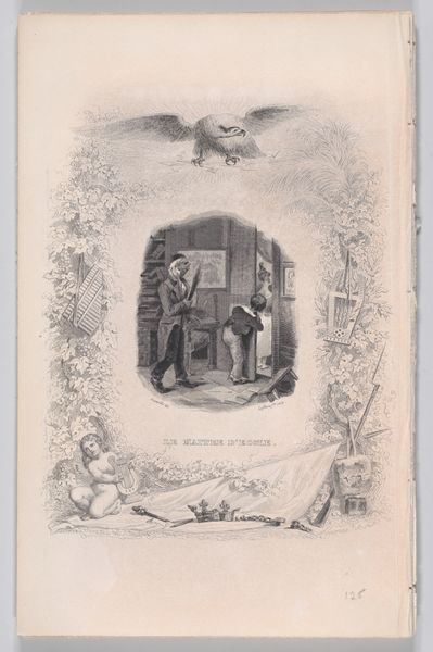 "Ugliness and Beauty" is an engraving by Tony Johannot, created as part of The Songs of Béranger, a collection of works that often critiqued French society and politics. Johannot’s composition invites us to consider how beauty and ugliness intertwine in the human experience. At the center, a couple stands beside a coffin, their expressions a mix of grief and tenderness. They are framed by symbols of both beauty—an angelic figure, floral garlands—and ugliness— a looming, shadowy figure and discarded royal regalia. The piece challenges conventional notions of beauty, suggesting that it can coexist with the grotesque and the sorrowful. In post-revolutionary France, where the dreams of liberty, equality, and fraternity had given way to a new order, such imagery served as a potent commentary on the shifting values and realities of French society. Johannot asks us to consider the beauty in moments of grief and the ugliness that can lurk beneath the surface of power and authority. The emotional complexity of the image invites us to reflect on our own experiences of love, loss, and the search for meaning in a world filled with contradictions.