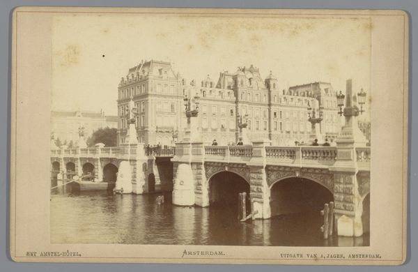 Editor: This is a photograph titled "Schwarzenbergbrug en de Karlskirche, Wenen" taken sometime between 1868 and 1875, likely an albumen print, attributed to M. Frankenstein & Co. It has such a delicate and serene quality. What draws your eye when you look at it? Curator: Immediately, the photographic process itself becomes apparent. The albumen print, a technology reliant on readily available materials and specific labor practices, reveals a tension. Here, a commercial studio, "M. Frankenstein & Co.," employs a romantic, almost painterly, style to depict the bridge and the church, yet the means of production speaks to a wider industrializing world. Editor: That's fascinating! I hadn't considered the company name in relation to industrialization. How does that relate to the city itself? Curator: Vienna, in this period, was a burgeoning center of manufacturing and consumption. Consider the labor required to quarry and construct the bridge, versus the seemingly effortless capturing of its image through photography. Does this suggest a negotiation between handcraft and mechanization shaping urban life and its representation? And note how photography democratized image-making to some extent; yet portrait studios are branded and are often part of larger chains such as in this image. Editor: I see, the photograph isn't just a picture of Vienna, it’s also a document of the city's changing economy and relationship to art-making! I never thought about landscape photography in this way. Curator: Exactly! Examining art through its materiality offers vital clues about broader social forces at play. Hopefully you can apply it in other scenarios and periods too!