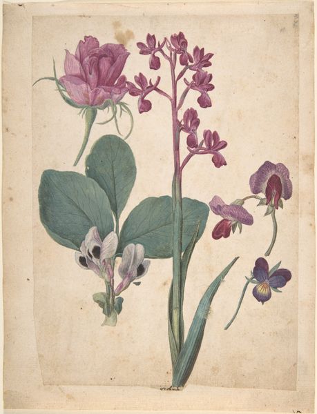 Hans Simon Holtzbecker created this botanical study of Fritillaria meleagris, or snake's head fritillary, in watercolour. The composition is deceptively simple: two flowering stems are placed against an unmodulated background. The leaves are rendered in flat green tones, the stems in earthier hues. The artist’s attention to detail draws us to the subtle geometry of the plant’s structure and how the delicate pattern of the flower is realized using intricate stippling. Holtzbecker captures the plant's fragility and strength, exploring how even the most detailed representation is still an abstraction from the living specimen. His skill is evident in his use of colour to define the form and texture of each flower, inviting us to consider the tension between art and nature. Look closely again at how colour and form combine; and you will see how Holtzbecker transforms botanical illustration into an aesthetic object.