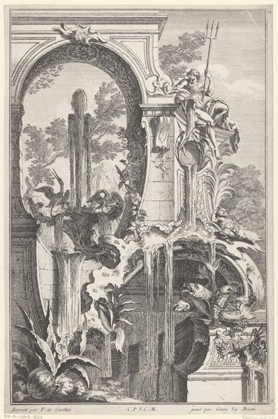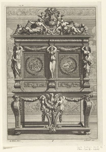 This print, "Voetstuk met halffiguren," was created in 1749 by an anonymous artist using etching. Look closely, and you’ll notice the intricate lines created by this intaglio process, where acid bites into a metal plate to hold ink. The material properties of metal as a ground for reproducible images allowed for the wide dissemination of ideas during the enlightenment. But what ideas are being circulated here? The print depicts a pedestal, shouldered by female figures, which support an inscription. The labor-intensive etching process stands in stark contrast to the themes of power and classical monumentality. Although the artist remains anonymous, we can speculate that they were working within a commercial system, catering to a market for decorative prints. Etchings like this blur the line between art and craft, challenging our notions of high and low culture. So next time you encounter a print, consider the complex interplay of material, process, and social context that gives it meaning.