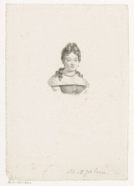 Curator: This is Auguste Adrien Jouanin's 1852 pencil and charcoal drawing, "Meisje met omslagdoek." What are your initial thoughts? Editor: My first impression is melancholy. There is a somber mood communicated through the averted gaze of the girl and the muted tonality. Curator: Precisely. The tonality is remarkable. Note the artist's sensitive rendering of light and shadow across the form. See how the lines vary to describe both the coarse texture of the shawl and the smoothness of the girl’s face. It’s a symphony of grays. Editor: It certainly speaks to the vulnerability of girlhood during a time of stark economic disparity. Her wraparound shawl alludes to possible hardship or economic struggle and immediately contextualizes the work, giving a nod to the exploitation of children in the nineteenth century. Curator: One could also interpret it as a formal element. Consider the function of the draped fabric to direct the viewer’s attention to the face, framing it. Look closely: how does the patterning interact with the delicate shading on her face to communicate both depth and emotional reserve? Editor: Her downcast eyes draw me to speculate whether there may be any association of abuse and marginalization that impacts girls’ life trajectories, even from early childhood. Curator: But don't overlook Jouanin’s skilled employment of romantic and realistic line to portray the subject and elevate drawing to the same level as more respected genres such as history painting. The precision of line underscores the emotional weight we attach to her gaze. Editor: Even through these varied interpretations, we find the picture leaves lasting impact in today’s society. Curator: Yes, its power resides in the successful confluence of technical skill and its immediate emotional accessibility, despite temporal distance. Editor: Absolutely, a reminder that even seemingly simple images are densely layered with multiple meanings.