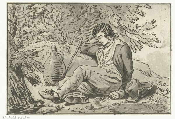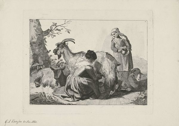 This illustration was made as a frontispiece for Waldemar Thisted's "Sirenernes ø", or "Island of the Sirens" by an anonymous artist. The image evokes a mythical world of seductive danger. We see a barefoot woman at a spring, filling a jug, while a cat looks on. It is unclear exactly what time this was made, but the themes of nature, mythology and the peasant figure connect it with other imagery of the late 19th century. This was a time when artists and writers were questioning the role of the industrial revolution and the rise of the city. Figures like this woman represented simplicity and a connection with nature. The book, and the image itself, may speak to broader anxieties about modernity and the desire for an idealized, pre-industrial past. To understand the image better, one would research the writings of Thisted, the illustration practices of the period, and the complicated relationship between Danish artists and folklore.