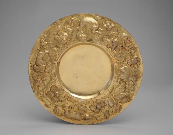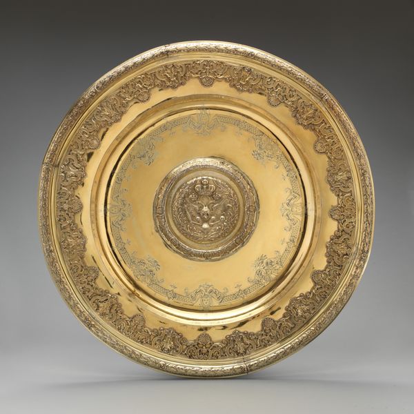 This large serving dish, known as a salver, was made by the workshop of Franchi and Son. It is made of gilded silver. Now, silver is a soft metal, so to achieve this level of detail, the makers would have employed a technique called 'repoussé,' hammering the design from the reverse side. The gilding process involves applying a thin layer of gold to the surface, enhancing its visual appeal and value. The choice of precious materials indicates a wealthy patron, someone eager to display status. The scenes themselves seem to be classical in nature, further indication of the owner's taste. Think about the number of skilled artisans involved in creating this object. From the silversmiths with their hammers, to the gilders with their delicate brushes. The salver embodies both artistic and economic value, reflecting the social structure of its time, and blurring the line between artistry and labor.