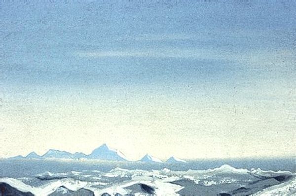 Nicholas Roerich painted "Sacred Himalayas" with thin paint, layering shades of blue to conjure up a whole world. Roerich wasn't just painting mountains; he was painting a feeling, a spiritual place, and you can sense that in the way he approaches the canvas. Look closely, and you can see the subtle texture, how the paint almost floats, creating depth. It's like he's trying to capture the intangible, the way light hits the peaks and the shadows dance in the valleys. Notice the way the mountains in the background fade into the distance, dissolving into a misty blue haze. It is not about photorealism. It is about process. Roerich’s spiritual approach reminds me of Hilma af Klint, who also looked beyond the surface of things. Both artists share a similar pursuit of the mystical through art. Like any great painting, it’s an invitation to bring your own experiences. What do you see?