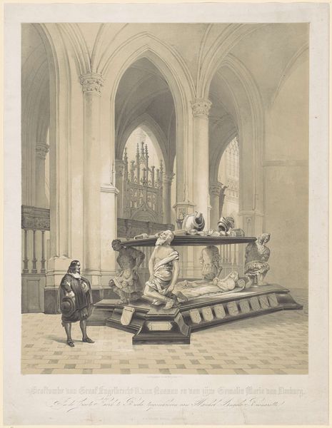 Editor: This is a photographic reproduction from between 1890 and 1905 by Francis Frith, showing Poet's Corner in Westminster Abbey. It feels quite… austere, almost ghostly with the blue tone. All those stone monuments. How should we interpret this work? Curator: It's important to consider the historical context of memorialization and its relationship to power. Whose stories are told in Poet's Corner? Which voices are enshrined in these monuments, and which are conspicuously absent? The photographic reproduction, a relatively new medium at the time, democratized access to this elite space, didn’t it? How might that impact the social understanding of who gets remembered? Editor: So you're suggesting that the photo itself challenges the exclusive nature of Poet's Corner? Curator: Precisely! Photography makes the space and its enshrined figures more accessible. It makes you consider who has access and who controls the narratives being presented. How might contemporary discussions around decolonization and representation change how we view such spaces and their associated photographic records today? Editor: I hadn't considered that. The albumen print emphasizes the whiteness of the marble, too, which definitely strengthens that narrative. Curator: Indeed! This photograph also perpetuates a specific vision of history, likely one that centers certain (often white, male) literary figures. Examining its choices highlights the power dynamics inherent in creating cultural heritage. Does the photographer, through their choices in composition and light, reinforce the authority of these figures, or does the new medium challenge this historical power? Editor: It gives me a lot to think about regarding the choices of what we memorialize and how. I see it differently now. Curator: Exactly! Recognizing these dynamics allows us to critically engage with how history is presented and whose stories are privileged.