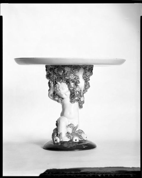 Curator: This elaborate "Standing Cup" dates to 1665-1670 and is attributed to Johann I Seutter. It is crafted from silver, a metal vessel of incredible skill that reflects Baroque ideals. Editor: It looks remarkably opulent, almost excessively so. The sculpture teeters on the edge of gaudiness. I'm struck by the tension between the heaviness of the material and the seemingly effortless pose of the figures. Curator: The piece exists at an interesting point in Dutch and broader European social dynamics. Consider who was drinking from it. It speaks to the conspicuous consumption of the rising merchant class who sought ways to communicate status. The object served as a silent declaration, but how valid was it? What socio-economic systems was this visual performance dependent upon? Editor: Right, it begs the question of who made it and under what conditions. The labour required to transform raw silver into this intricate cup – who were the metalworkers and what were their lives like? I can only imagine this involved incredibly precise silversmithing, raising, chasing and engraving...all those labour hours are embedded in the final product. It makes you consider craft traditions and the complex relations between the artists and the economy they inhabit. Curator: Exactly, and how does the very form contribute to those statements? A single, athletic figure seems burdened, forced into an aesthetic posture. How might we interpret that pose, or perhaps challenge its presumed heroic qualities, given our contemporary awareness of physical labor? This era promoted forms of visual entertainment and amusement in drinking rituals, and here that is manifested as an uneven relationship. Editor: Indeed, and to add to this complexity, silver as a material had an almost alchemical draw: both precious and functional. But beyond the material, let's not forget the floral motifs and figurative embellishments—how they elevate this functional object to the status of high art. Curator: True. These details signal wealth and a kind of cultivated sensibility—access to the aesthetic beauty and cultural capital in that era. It is fascinating to think about this object now. Can an object originally created for a limited audience open up conversations about those in the past who created it? And more radically, in what ways could it reshape current dialogues and actions surrounding contemporary craft production? Editor: It's an enduring reminder of how art, even something seemingly straightforward, is actually entangled with labor, material culture, and complex class dynamics. Curator: A multi-layered relic of social and creative relationships.