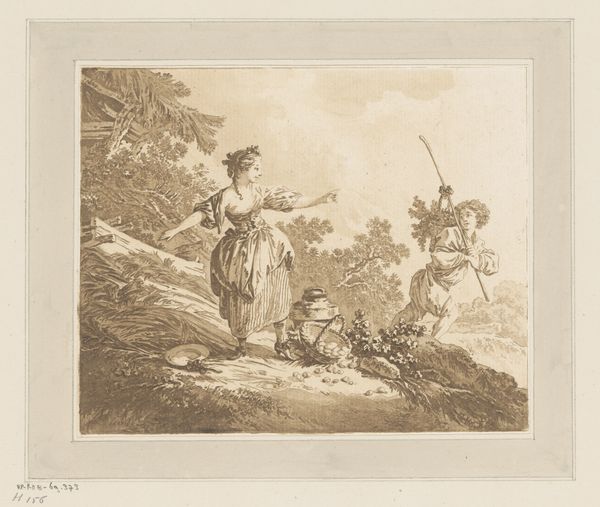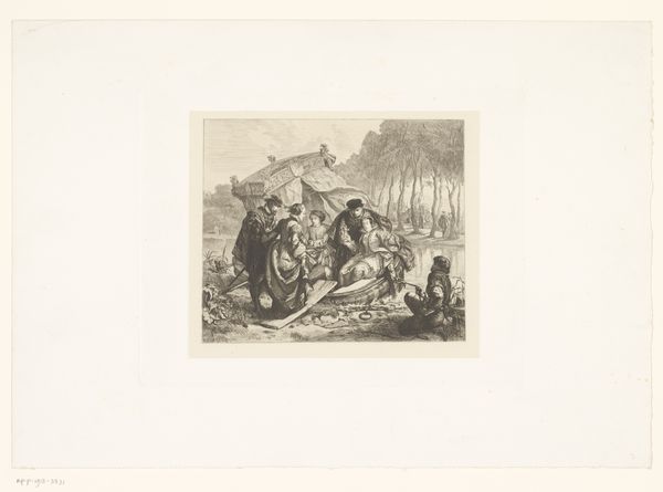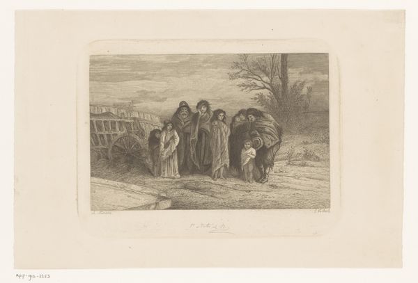 Joseph Meganck created this print, "Travelling Musicians at a Water Source in the Landscape," using a technique called etching. Think of etching as drawing with acid, and it was a popular medium for disseminating images in the 19th century. Meganck would have coated a metal plate with a waxy, acid-resistant ground, then scratched an image into it with a sharp needle, exposing the metal underneath. He’d then submerge the plate in acid, which bites into the exposed lines, creating grooves. These grooves hold ink, which can be printed onto paper. Look closely, and you’ll see a certain graphic quality to the lines, distinct from a drawing. The print shows a scene of itinerant musicians seeking water, and perhaps some charity. The artist is not only representing a scene, but also using the print medium to circulate it widely. In this sense, "Travelling Musicians" reflects the broader social context of the 1800s, when printed images became increasingly important as a means of communication. It’s a reminder that the art world is just one part of a larger ecosystem of labor, materials, and exchange.