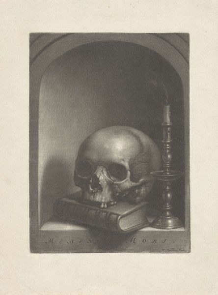 This engraving, "Allegory of Transience," was made by Harmen de Mayer in the 17th century. The stark image confronts us with symbols of mortality: a skull resting upon books, paired with a candle extinguished, its smoke rising like a departing soul. These "vanitas" motifs remind us of life's fleeting nature. We see echoes of this sentiment throughout art history—the skull, a memento mori, a constant companion in Dutch Golden Age painting and beyond. Consider how the extinguished candle mirrors the brevity of existence, a motif traceable to ancient Roman funerary art, where torches were inverted to symbolize death. The presence of the skull evokes primal fears, while the books suggest the futility of earthly knowledge in the face of oblivion. This iconography resurfaces across centuries, a testament to our enduring obsession with mortality and our quest to find meaning in the face of its inevitability.