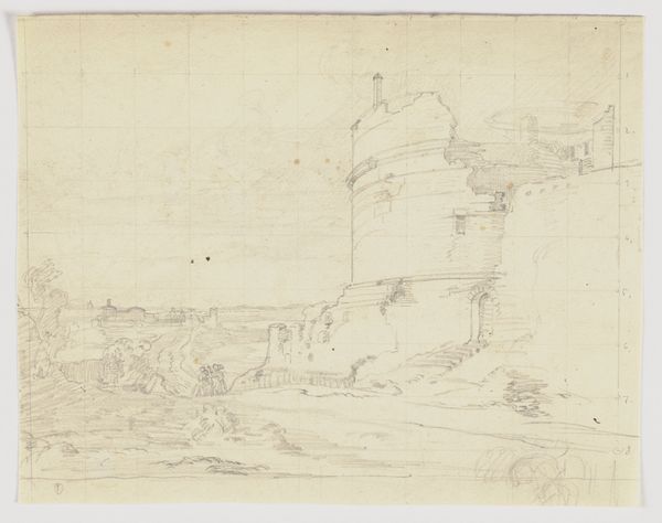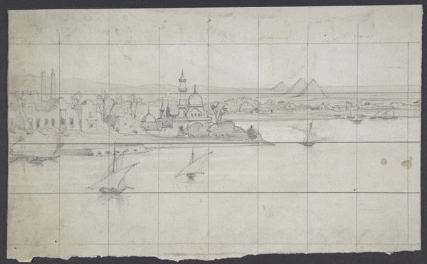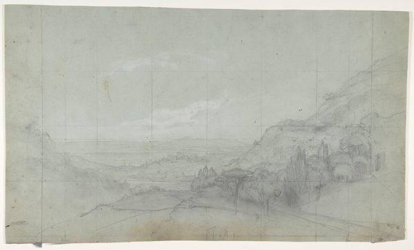 Editor: This drawing, "Design for a Stage Set at the Opéra, Paris" by Eugène Cicéri, probably made somewhere between 1830 and 1890, it looks like pencil on paper. I'm really drawn to its ethereal quality, like a dream. What strikes you when you look at it? Curator: For me, the fascinating thing here is how this connects the *process* of theater design with broader social forces. Look at the labor involved - the pencil marks meticulously detailing the scene, the potential carpentry to construct such an elaborate backdrop. It begs the question, who are the hands that bring this design to life? Editor: That's interesting, I hadn't thought about the hands needed beyond the artist. Does the choice of using a drawing over, say, a painting, influence your perspective? Curator: Absolutely. A drawing is often a preliminary step, revealing the artist's working process. The materiality of the pencil – graphite mined and processed – links us to industrial and economic networks of the time. The consumption of theatrical spectacles relies on all that unseen labor and material extraction. Editor: So, it's about tracing the lifecycle of this design, from conception to consumption, and acknowledging the often-invisible contributions. Do you think knowing this was a stage design impacts how we should view the architectural and natural forms depicted? Curator: Precisely. This isn't simply a landscape, it’s a *manufactured* landscape, a consumable fantasy. Examining the materiality and production allows us to deconstruct the illusion of high art and acknowledge the labor and resources embedded within. Editor: That makes me think differently about what I'm seeing now. It is like the whole image, and therefore also the show, has many layers both visible and unseen. Curator: Yes, by shifting the focus to the production of art, rather than purely aesthetic contemplation, we see how deeply entwined art is with social and material conditions. A pencil and a stage design offer profound insights.