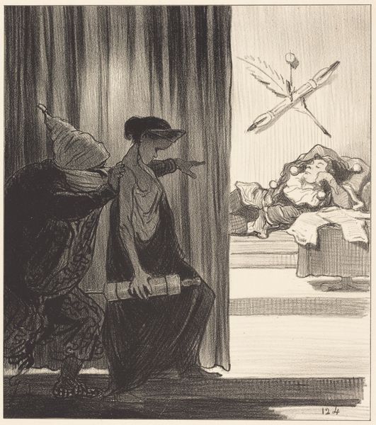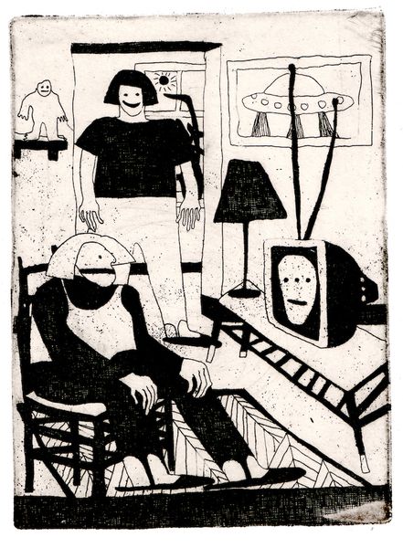 This untitled artwork was made by EtchingRoom1 in 2016. The stark contrast of black and white immediately draws you into a high-stakes scene, rendered with meticulous cross-hatching. The composition, split into distinct areas by light and shadow, creates a sense of unease. The artist uses simplified forms and bold outlines to build a narrative rich in semiotic potential. The barred window, a recurring motif in art history, could represent imprisonment, a state which is reinforced by the figure bound to a chair. The stark lighting emphasizes the subject's helplessness but also introduces elements of chiaroscuro, heightening the dramatic tension. A figure standing in the darkness points directly at the captive, suggesting control and intimidation, while a distressed figure at the window amplifies the sense of panic. The artwork masterfully engages with themes of control, freedom, and the unseen forces that shape our reality. This piece is not just a visual narrative but a potent engagement with existential questions.