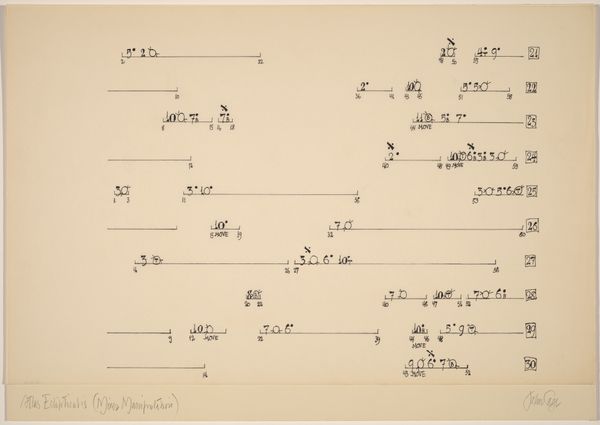John Cage made this musical score in 1973 for a performance with Merce Cunningham and his dance company. It looks like he used pen on lined paper, not unlike what I sketch on. You can see the hand in it, the process. The texture of the paper itself, those horizontal lines, become part of the composition, a foundation for Cage’s notations. The blue ink is thin, almost transparent. It’s not about hiding the process but laying it bare, making the artistic choices visible. There's something almost childlike about the script, recalling the kind of notation you might find in a science notebook, somewhere between precision and expressive freedom. Look at those groups of vertical marks in the lower part, under the words “key for identifying Hexagram.” They feel both precise and somehow arbitrary. Like the work of Sol LeWitt, this score reminds us that art is an ongoing dialogue, a set of instructions, open to interpretation and change.
