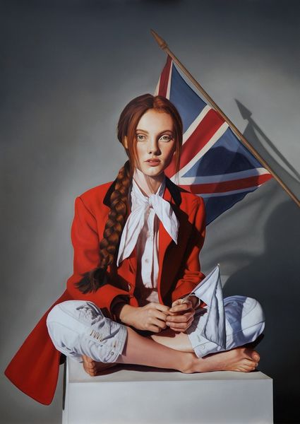 Mary Jane Ansell made this painting, Invincible, using oil on canvas. We see a young woman wearing a British naval cap emblazoned with the words H.M.S. Invincible, draped in the Union Jack. Ansell, a contemporary British artist, here presents us with an image that invites questions about national identity, gender, and history. The title itself, "Invincible," calls to mind a legacy of British naval power and imperial ambition. Yet, this legacy is filtered through the delicate, almost ethereal figure of a young woman. Consider the historical context, this could be a comment on the changing face of Britain in the 21st century. It might critique traditional symbols of national pride by associating them with a figure that defies conventional expectations. To fully appreciate Ansell's work, we delve into sources like naval archives, studies of British identity, and feminist art history. Only then can we understand how this painting engages with broader cultural conversations.
