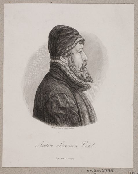 Leendert Springer created this portrait of Fra Giovanni Battista Cassini using a combination of lithography and stipple engraving. The composition is remarkably simple: a profile view set against a neutral background. Yet, this austere setup allows the textural contrasts to come to the fore – the coarse fur hat against the smooth skin of the face, the intricate lines defining the beard against the flat expanses of the robe. This is a study in textures, almost tactile in its visual presentation. This image, however, isn't merely representational. It invokes a deeper discourse on identity and representation. The detailed rendering invites us to consider how we construct meaning from visual cues. The play of light and shadow across Cassini's face isn't just a technical exercise; it’s a semiotic act, each line and shade a signifier contributing to the construction of his persona. Consider how the artist's choices – the angle, the lighting, the textures – all work together. These elements converge to evoke not just a likeness, but a statement about being. This is a testament to the power of form in shaping our perceptions.