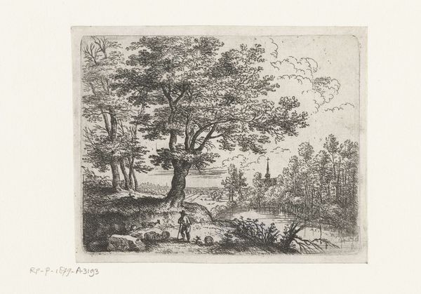 This etching, "Three Trees, a Shepherd with Sheep and a Dog," was crafted by Lucas van Uden, a Flemish artist, in the 17th century. Van Uden lived during a period of significant social stratification, and this piece offers a glimpse into the pastoral life that was idealized by the Dutch Golden Age. Observe how the trees dominate the composition, framing a humble scene of rural life. The shepherd and his flock, rendered with delicate detail, exist in harmony with nature. But consider, too, the absence of the landowners, whose wealth depended on the labor of people like this shepherd. Van Uden’s work does more than simply depict a landscape; it invites us to reflect on the social and economic structures that underpin such seemingly bucolic scenes, reminding us of the complex relationship between humanity and nature, and the often unseen hands that shape our world.