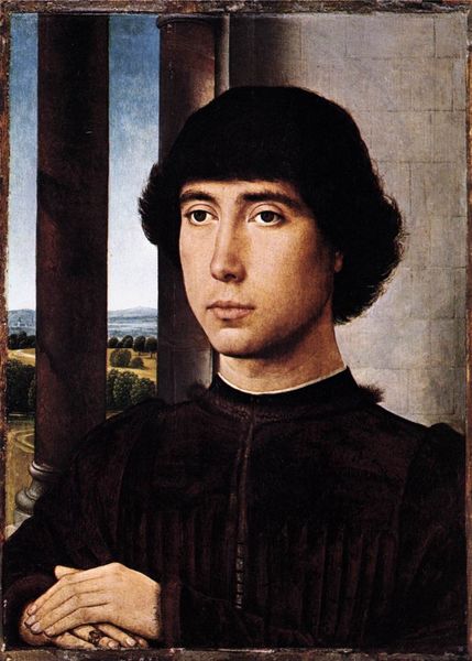 Editor: Here we have Hans Memling’s “Portrait of a Young Man Before a Landscape,” created around 1480 using oil paint. What strikes me is how modern it feels, despite being over 500 years old. What do you see in this piece, looking at it through a historical lens? Curator: Well, it's tempting to focus on the sitter himself - who was he? What was his social standing? But for me, what’s most revealing is the context it gives us for understanding patronage during the Northern Renaissance. Notice how the landscape, still quite novel, subtly elevates the subject. Editor: Elevates, how so? Curator: The integration of the landscape background – instead of a plain backdrop – suggests wealth and status. Commissioning Memling, an in-demand artist, and requesting this style speaks volumes. The landscape wasn't merely decorative; it suggested the sitter's worldliness and control over his environment, both literally and figuratively. It was carefully constructed. What about that gaze – what does it tell you? Editor: I think he looks rather pensive, almost melancholic. Curator: Precisely. This era witnessed a growing emphasis on individual expression and interiority. The slightly downturned gaze, the soft modeling of the face – all these elements contribute to a portrayal of inner thought, signaling the emergence of a more individualized and humanistic sensibility in art and society. A stark difference with religious art where such “human” imperfections are not admitted. Editor: That's a completely different way to appreciate this than I initially thought. Curator: Art provides fascinating clues to decipher society. And society, too, determines how art can function as a status symbol. A continuous conversation between present and past!