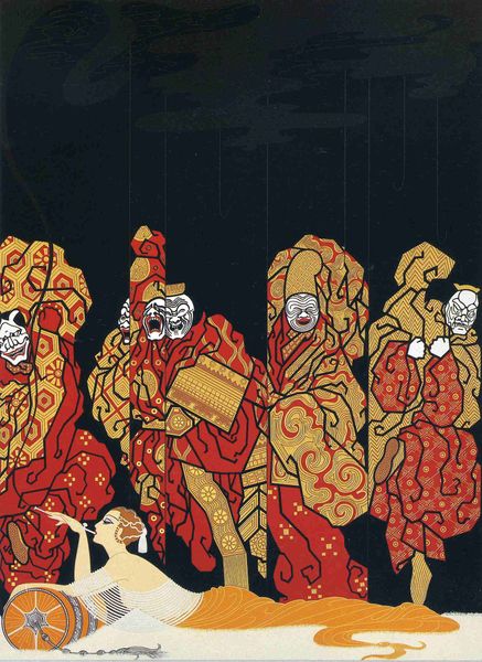 This is Takashi Murakami’s work, "Assassination of Spirit." The piece grabs you with its busy composition and eerie figures set against a dotted backdrop. The muted palette enhances a subtle tension. The artist’s integration of flat, graphic elements with detailed, almost grotesque characters creates a visually jarring experience, yet there is a harmony between the disparate elements that is distinctly Murakami. Murakami challenges the traditional art world's division between high and low art. The visual language draws from anime and manga but the layered imagery, with its references to traditional Japanese art and Buddhist iconography, complicates any straightforward reading. Through a semiotic lens, we might see the juxtaposition of innocence and perversion, tradition and modernity, as Murakami's critique of contemporary culture. Consider the title, “Assassination of Spirit.” This points not just to cultural criticism but to a profound questioning of values and meaning within our society. The work is not merely decorative; it's an active participant in a cultural dialogue.