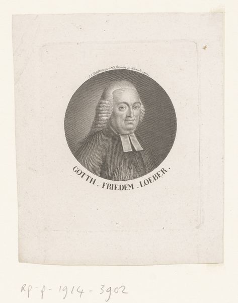 Curator: This is "Portret van Johann Theodor Kunneth," an engraving executed in 1791 by Paul Wolfgang Schwarz. The portrait is striking in its neoclassical restraint. What's your immediate reaction to it? Editor: I'm struck by its somber feel, despite the subject's formal attire. The gray ink conveys a certain sobriety; almost feels like a historical document rather than just a portrait. Curator: Indeed. Consider the implications of creating a print, specifically an engraving, at this moment in history. It allowed for wider dissemination of Kunneth’s image, suggesting his societal importance within a very specific framework. Think about the access to such a portrait, how it solidifies power dynamics of the time. Editor: Absolutely. And engravings themselves, the meticulous labor involved. Each line etched into the metal plate, then pressed onto paper – it’s a testament to craftsmanship. I'm interested in where the paper comes from, and the quality of the ink; each component speaks to broader socio-economic contexts. Curator: It’s fascinating to consider the visual language at play. Neoclassicism, with its emphasis on order and rationality, serves as the perfect aesthetic vehicle for representing the Enlightenment ideals prevalent among the elite. How do these ideas intersect with social justice and hierarchy of class in the late 18th century? Editor: The print, with its replicable nature, inherently challenges unique art status. What were the conditions of making it accessible to the masses? Also, I am curious to consider the role of women workers within printing sphere. It is also printed matter used within patriarchal structures; and whose faces aren't given same privilege of portrayal. Curator: These kinds of portrait engravings cemented figures like Kunneth in public memory but also reinforced established social and political power structures that privileged some at the exclusion of other voices. This artwork reminds us to examine both who is portrayed and who remains unseen. Editor: Definitely. Exploring the raw materials that went into creating this image helps us contextualize its worth as object but pushes toward the labor, the tools and structures shaping art. Curator: Thinking about Schwarz’s engraving and its legacy helps us think about power, representation, and the enduring relevance of questioning the stories art tells. Editor: Agreed, engaging in this type of close viewing shows the material reality and invites us to confront art making processes alongside the human story.
