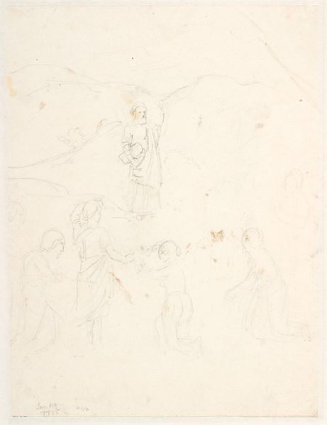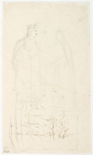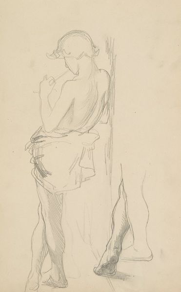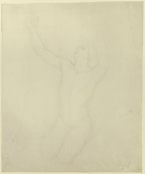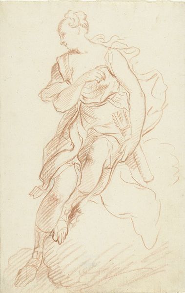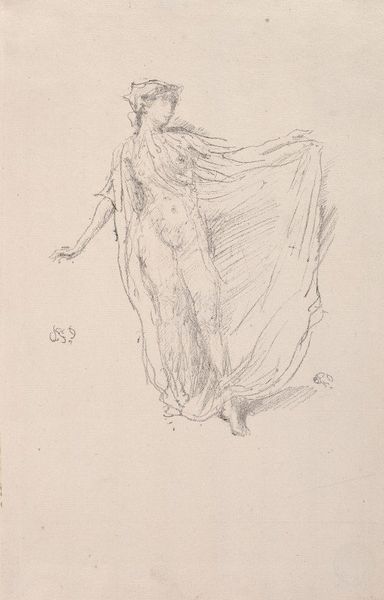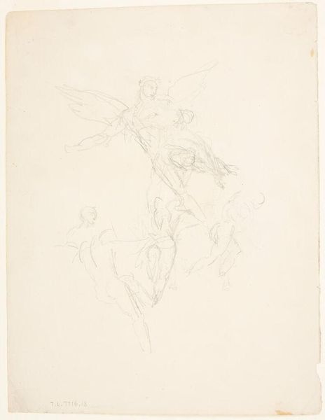 Curator: Here we have John La Farge's study, "Fortune on Wheel," created for the Frick Building in Pittsburgh. It measures about 27 by 20 centimeters and is currently housed at the Harvard Art Museums. Editor: It feels so ethereal, like a whispered dream. The delicacy of the pencil lines almost makes Fortune weightless as she floats on that wheel. Curator: The image of Fortune on a wheel is a classical motif, symbolizing the unpredictable nature of fate. La Farge often drew upon historical allegories. Editor: Right! It's a reminder that life is this wild, exhilarating, and terrifying ride where you're always teetering on the edge. Curator: Absolutely. La Farge's commission for the Frick Building reflects the era’s embrace of art as a marker of civic and commercial progress. Editor: I bet even the Robber Barons had their moments of existential dread, clinging to the wheel for dear life! Anyway, that's a beautiful drawing. Curator: Indeed, a poignant reflection on ambition and chance, even amidst industrial power.