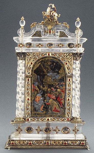 Moderno, or Galeazzo Mondella, created this bronze plaquette titled ‘Pietà, with the Virgin, Saint John, and an angel’ in Italy during the late 15th or early 16th century. The theme of the Pietà, depicting the Virgin Mary cradling the dead body of Jesus, has a deep resonance in Christian art, representing grief, sacrifice, and divine love. The composition invites us to reflect on the emotional intensity of loss, amplified by the supporting figures who are surrounding the body of Christ. This small-scale bronze relief departs from traditional representations by including Saint John and an angel, alongside God, in the upper section, thereby broadening the narrative and emotional scope of the scene. Moderno’s ability to convey deep emotion through bronze is influenced by the sculpture and humanism of the Italian Renaissance. It encourages a dialogue between faith and humanism.