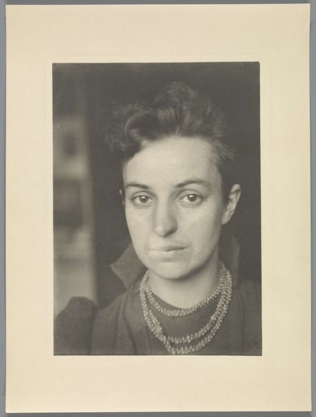 This is a photograph of Dorothy Norman by Alfred Stieglitz. Notice how Stieglitz used light and shadow to model Norman's face, creating a sense of depth and intimacy. The composition is striking; Norman's face is tilted, with her gaze directed slightly upward, giving her a thoughtful expression. The sharp focus on her eyes draws us in, while the soft focus on the background keeps the attention on her. The cropping of the photograph, cutting off part of her head and shoulder, adds to the sense of immediacy, as if we've caught her in a private moment. Stieglitz was interested in the idea of photography as a form of artistic expression. In this portrait, he seems to be exploring the inner life of his subject, rather than simply capturing her likeness. The lack of artifice, combined with the careful attention to composition and light, suggests a desire to reveal something essential about Norman as an individual. It invites us to consider the relationship between the photographer and the subject, and the ways in which photography can both capture and create meaning.