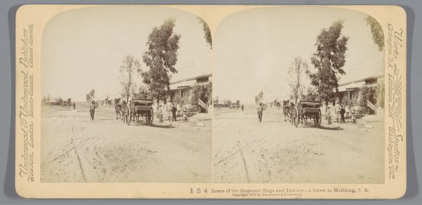 This stereograph entitled Dorpsgezicht Soengeiliat, or Village View of Soengeiliat, was created by Robert Julius Boers. Without a date, we can still contextualize it within Boers’ broader body of work, produced during the colonial era. The photograph offers a glimpse into a village in Bangka, Indonesia, likely through the lens of a European photographer. The image may seem like a neutral depiction of everyday life, but it's framed by the power dynamics inherent in colonial representation. How does Boers, as a foreign artist, perceive and present this village? What aspects of the community are highlighted, and what might be overlooked? The seemingly mundane scene carries layers of cultural interpretation and raises questions about whose perspective is prioritized. Stereographs like these were often consumed by Western audiences, eager to experience exoticized views of distant lands. Consider how this image might have shaped perceptions of Indonesian culture and identity among its viewers. What narratives does it reinforce, and what complexities does it obscure? This photograph serves as a poignant reminder of the selective and often biased nature of visual representation.