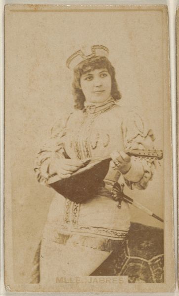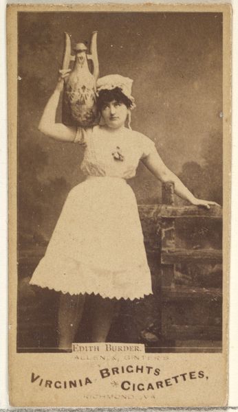 This is a carte-de-visite of Ella Chapman, an actress, produced by Goodwin & Company as part of a series of promotional cards for Gypsy Queen Cigarettes. These cards emerged within the burgeoning culture of celebrity and consumerism in the late 19th century. They coincided with increased advertising and the mass production of images. The fact that an actress is used to promote cigarettes tells us something about the cultural associations between performance, femininity, and desire. Ella Chapman, striking a theatrical pose with a tambourine, embodies the exoticism implied by the brand name "Gypsy Queen." It is worth considering how the commodification of Chapman's image and the orientalist themes used in branding catered to the fantasies of the consumer, while also potentially limiting her agency and reinforcing stereotypes. The card invites us to consider the complex interplay between identity, representation, and commerce.