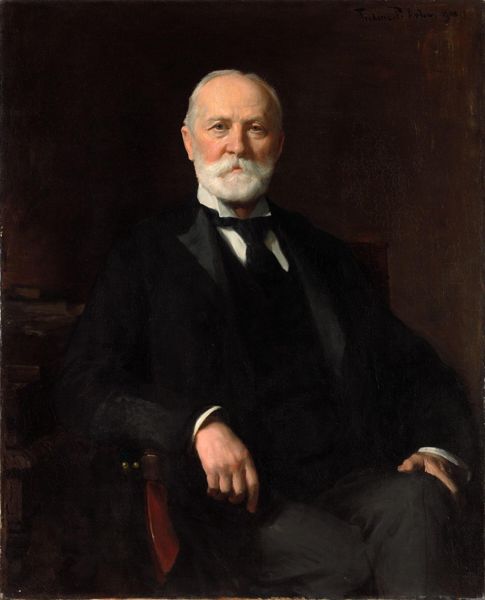 The sugar magnate, Sir Henry Tate, sponsored numerous projects relating to public education, health and welfare. He presented his collection of nineteenth-century British art to the nation and paid for a gallery to house it. This portrait was completed in the year that the National Gallery of British Art, on the site of the old Millbank Penitentiary, was opened by the Prince of Wales. Only in 1932 did the institution become officially known as the Tate Gallery. Gallery label, August 2004