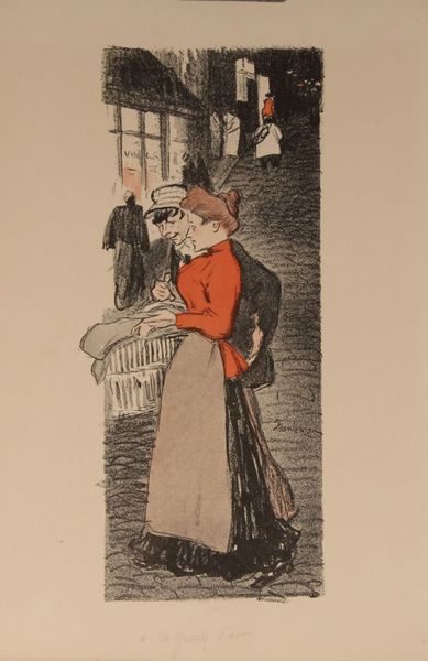 Théophile Alexandre Steinlen created "Mon Petit Homme" with lithographic crayon and watercolor on paper. Steinlen emerged as an important social observer during the Belle Époque in France. The image depicts a bourgeois couple frozen in a doorway. While the man’s hand is on the door handle, his female companion has her arm firmly around his. The title, “My Little Man,” invites speculation on her possessive gesture. What does it mean when a woman infantilizes a man, especially in the context of a culture embroiled in anxieties about masculinity and class? While Steinlen made a name for himself depicting the lives of the working class, here he turns his attention to the bourgeoisie. He subtly satirizes their habits and pretensions. The image creates a tension between private, domestic intimacy and the social performance of class identity in public. It also seems to evoke a timeless dynamic within intimate relationships, where control and affection intertwine.