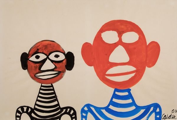 Alexander Calder made this playful ink drawing of two figures in 1968. The boldness of the black lines and the simplicity of the shapes make it feel immediate, like a doodle that just sprang to life. I love the way Calder isn't trying to be too precious, you can almost feel him having fun with the materials. The figure on the left has this intense red body, in contrast to the graphic black and white head with those mesmerizing spiral eyes, so bold, and the figure on the right is all stripes and elegant curves. The way Calder uses line is so direct. It reminds me that art doesn't have to be perfect, it just has to be alive. Calder was known for his mobiles, and you can see that same sense of balance and movement in his drawings, which have the immediacy of Matisse's line drawings. It’s a reminder that art is always a conversation, an ongoing exchange of ideas.