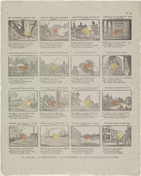 Curator: This engraving, titled "Zie lieve kleinen ziet kan u dit werk bekoren," is attributed to Jan Hendriksen and dates back to somewhere between 1781 and 1828. What strikes you most about its materiality and form? Editor: The most striking aspect is its composition. It’s almost like a page from a comic book, but the old engraving style and the antiquated text give it a unique feel. How should we interpret this blend of image and text within its historical context? Curator: Think about the means of production for this piece. Engravings allowed for mass production and distribution of images and text. Does it suggest anything about accessibility and the intended audience for this piece during that period? Editor: I suppose it made it easier for a broader segment of the population to see the image and read the text? The combination really emphasizes the narrative quality and accessibility, not just for the wealthy, which may not have been the case for other art forms. Is there a further meaning in this accessibility? Curator: Consider the relationship between the images, text, and the viewer's role. This work merges traditionally distinct art categories, bridging high art and accessible print. Is there something to this blending that elevates everyday themes? Editor: I think so! The combination of comic panels, combined with moralistic undertones, implies a message accessible to all. Curator: Absolutely. We see an early instance of making art that could be disseminated widely, thereby engaging diverse audiences. Now I can understand more clearly how prints became a vital medium for conveying social and cultural messages. Editor: I agree. Analyzing this piece through the lens of production, materials, and audience reveals new avenues of interpretation that go beyond mere aesthetic appreciation.