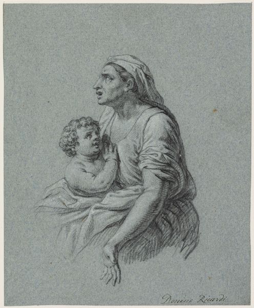 Editor: This pencil drawing, "Madonna with Child" by Richard Cosway, created between 1742 and 1821, feels strikingly intimate for a religious scene. The soft lines create a tender mood, yet there's something almost melancholic about Mary's expression. What historical factors might have influenced the artist's interpretation of this subject? Curator: That’s an interesting observation about the melancholic tone. Cosway worked during a period where Neoclassicism was prominent, emphasizing idealized forms and rationality. But this work hints at the burgeoning Romantic sensibility, which valued emotion and individual expression. Consider how the institution of the church may have perceived portrayals of religious figures. Do you see any indications here? Editor: Well, the drawing itself, being a less formal medium than painting, maybe suggests a shift away from grand public displays of faith to a more personal experience? It seems less like a statement and more like a private reflection. Curator: Exactly. And notice the relatively humble depiction of Mary. It diverges from the opulent, idealized portrayals that were commissioned previously by the church or aristocracy. How does Cosway’s presentation potentially democratize access to such imagery, reflecting broader social changes? Editor: It's fascinating to see those shifts reflected in the art itself. The transition away from purely academic styles into something more…human and relatable is very powerful here. Curator: Indeed. It's through understanding those shifts that we see how art participates in larger socio-political dialogues. Considering the artwork in public collections encourages conversation around representation. It prompts viewers to question the function and social role of devotional images throughout history. Editor: It’s really deepened my understanding to think about it in that broader context; considering how social and cultural shifts impacted its creation and reception makes all the difference. Curator: Absolutely. Hopefully this reveals how art constantly interacts with and is shaped by societal forces.