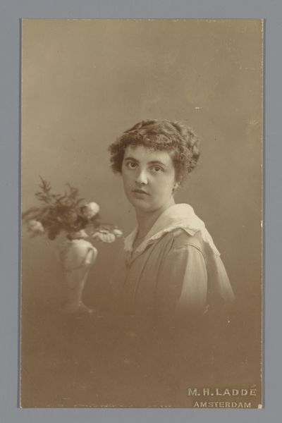 Editor: This is a reproduction of a photograph by Willem Witsen, made sometime between 1860 and 1915. It's a gelatin-silver print, a portrait. It’s lovely but quite serious. What strikes you about this work? Curator: Well, immediately the use of the gelatin-silver print interests me. Consider its rise – how it democratized photography, shifting its production from specialized studios to a wider range of practitioners. This accessibility broadened who could participate in image-making. Do you think that changes the portrait’s meaning or value? Editor: That's a good question! Perhaps it makes the sitter's status more ambiguous. Not necessarily aristocratic, but possibly emerging from a rising middle class with access to new technologies? Curator: Precisely! Now think about the labor involved in the chemical process. Each print required hands-on manipulation, a crafting. It existed in a tension: a technological image produced through craft labor. This complicates easy distinctions between "high art" and more vernacular photographic practices. What does the context of its making tell you? Editor: The handmade quality is intriguing given its technological basis. It also hints at an era of significant industrial changes, perhaps reflecting anxiety and tensions about automation, skill, and class. I’d also guess there’s considerable time spent for one photo back in those years. Curator: Good point! Considering photographic labor encourages questioning our assumptions about reproducibility. While photography enabled mass production of images, techniques still tied to manual process leave room to investigate its influence. Editor: Thanks, I now see this image as representing complex intersections between technology, labor, class, and artistic intention. Curator: Exactly, and maybe by viewing images like these, it inspires the reflection on photography and other visual artworks!