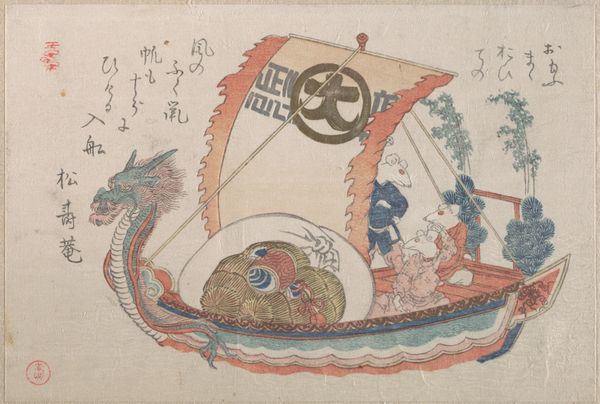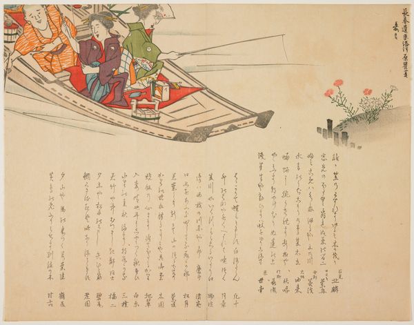 Curator: This is "Early to Dawn" by Ohara Donshu, also known as Akeyasuki, created between 1832 and 1842. It’s currently held at the Metropolitan Museum of Art. Editor: My immediate impression is a sense of everyday festivity. The lanterns create this diffused, gentle light, setting a very communal, accessible tone. Curator: Yes, and considering it’s an Ukiyo-e style print, likely woodblock, the availability of such scenes really democratized art in that period. We see ordinary people enjoying themselves at what appears to be a market or festival. What sort of symbolic context can we apply? Editor: Well, lanterns themselves are heavy with symbolism. Beyond literal illumination, they can represent guidance, hope, and remembrance of ancestors, often guiding spirits during festivals. Notice the particular designs on the lanterns too. It would be interesting to study those specific patterns. Curator: Right, the process of creating these designs and then transferring them onto woodblocks itself indicates a fascinating artistic and production-related consideration. Imagine the labor involved in carving the blocks for each color. Editor: It reflects a whole system of artistry and labor, not just a single artistic genius at work. Look at the implied movement in the image—from the vendors in the back to these small details of people gathering together, talking and sharing what seem to be food items in the foreground. There's something deeply human, even sentimental. Curator: Indeed. By focusing on material culture and means of artistic production, it allows us to expand our interpretation of what we traditionally value as art. Each part signifies material relationships. Editor: It also draws in these fascinating cross-cultural mythologies with themes such as good luck, happiness, safety and sometimes just something as a prayer for light through darkness in their family’s lives that’s something still present in the traditions, too. Curator: Absolutely. Investigating materials used in these works allows us to view not just artistry, but cultural significance inherent in all objects people use daily. Editor: Seeing how symbolism merges with such intimate depictions of common life makes me see this piece in an entirely new light.