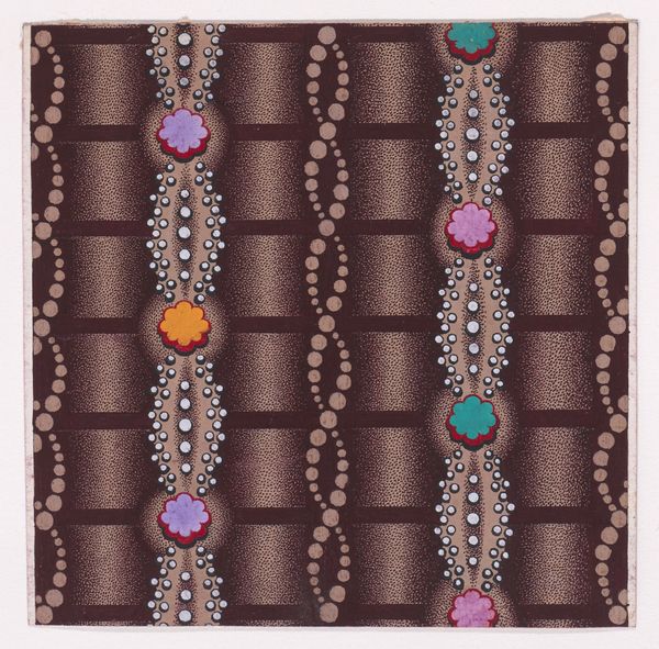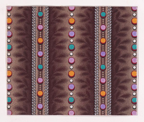 Curator: Here we have an intriguing textile design, "Textile Design with Vertical Garlands Bordered with Pearls Aligned to Form a Pattern of Semicircles Decorated with Oval-Shaped Rings Over a Glitched Background", dating back to 1840. It resides in the collection of the Metropolitan Museum of Art. Editor: My first impression is that the print is quite mesmerizing, a rhythmic visual experience that oscillates between order and visual static, the layering evokes a curious feeling that's both appealing and uneasy. Curator: Indeed. Examining the piece more closely, one is struck by its method of production. As a textile design, the work's purpose speaks directly to material application within fashion and design, how was this design impacting the modes of production in textiles, what machinery or new printing techniques enabled its repetitive nature? Editor: Absolutely. Placing this design within the social and political landscape of 1840, we must consider the burgeoning industrial revolution, colonialism, and their impact on labor practices. This type of highly stylized pattern-work often served as a form of cultural exchange but also cultural appropriation, frequently produced in colonial contexts for European markets. Curator: Certainly. The availability of new materials would have altered its creation, allowing for greater precision and perhaps enabling faster creation. The use of pearls, arranged in near perfect symmetry also draws from an earlier decorative excess while reflecting a change towards mass consumption. Editor: Furthermore, who were the artisans or laborers involved in creating this textile design? Considering gender, race, and class dimensions, what social implications were involved in the means of production of textiles at the time, in a space deeply implicated with gendered exploitation of female labor? Curator: The fact that it's categorized under "decorative art" underscores the historical bias present. Shouldn't it be granted higher recognition, especially considering that it has successfully straddled both the applied arts and now fine art given its placement within the museum context? Editor: Precisely! By embracing its layered meanings – its production methods, symbolic context, and socio-economic undertones, the textile speaks to the complex intersection of design, identity, labor, and political structures. Curator: By analyzing this piece through materiality and modes of creation, one acknowledges its importance not just in form but also as documentation to past processes. Editor: In reflecting, recognizing these design works through the prism of power helps challenge assumptions while promoting a more nuanced discussion of their past as well as modern-day relevancy.