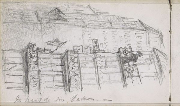 Curator: Up next, we have a work titled "Twee gevels" - or "Two Facades" - by Willem Witsen. This piece, held in the Rijksmuseum, was created sometime between 1870 and 1923 and rendered in pencil. What strikes you most about it? Editor: It feels unfinished, raw. The heavy pencil strokes give it a certain weight, an almost oppressive stillness, like a city holding its breath. The roofs loom – almost a premonition. Curator: I see what you mean. There's definitely a contrast between the sharp, almost aggressive lines of the architecture and the soft, smudged areas of shading. To me, these building fronts echo earlier, often Dutch, traditions that suggest home, belonging, a community that faces a street or a shared experience. But the style seems more "in progress," which disrupts tradition. Editor: The architectural facade becomes a stage upon which to view shifts of power. Witsen isn’t simply capturing a scene; it suggests alienation, rapid change in industrializing cities, wealth gaps, or social displacement that render community obsolete. Are we even allowed inside? What does Witsen imply about a “home”? Curator: Well, let's not forget Witsen’s affiliation with the Dutch Impressionists! These artists found beauty in everyday scenes and often aimed for capturing fleeting moments, the mood and the light. Editor: And what kind of world allows “fleeting moments” as a primary value? Curator: That's fair, but this period coincides with major urban expansions across Europe, reshaping both physical landscapes and social structures. It’s no wonder artists were drawn to depicting these changing cityscapes, which for many created new symbols to experience the self. It’s exciting! Editor: Right, a changing cityscape that comes with shifting geopolitical and environmental dynamics; “cityscape” often disguises capital interests at work. Witsen's sketch becomes more than just an impression. Curator: Precisely. And the humble pencil – think of its inherent accessibility – making such grand historical observations! Editor: Perhaps Witsen can lead us to question how we can engage with and, in turn, transform the narratives embedded in our own cityscapes today.
