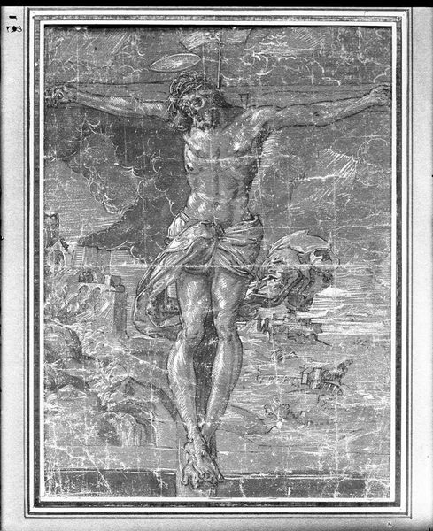 René Boyvin created this print, “Christ Holding a Cross in a Niche,” during the late Renaissance, using engraving on a sheet. The image confronts us with a powerful figure of Christ, framed within the sharp vertical lines of a niche, creating a striking contrast between the organic form and rigid architecture. Boyvin's formal approach invites us to consider the cross as both a structural and symbolic element. The pronounced musculature of Christ's torso and limbs, rendered with intricate detail, intersects the cross's weight. Note how the engraver creates the illusion of depth using hatching and cross-hatching to model form and texture. The interplay between light and shadow enhances the emotional depth of the scene, evoking a sense of solemnity. The chalice on the lower right serves as an anchor to the scene. By framing Christ within the niche, Boyvin engages with Renaissance conventions of perspective while inviting a reflection on themes of sacrifice.