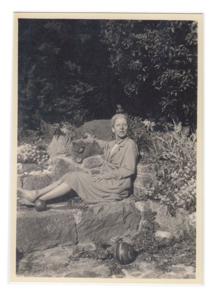Gardeners 1978–9 is a large series of black and white photographs that depicts individuals standing outdoors in the gardens they tend, which vary in character from sprawling fields in the countryside to small urban front gardens. Although the gardeners’ poses, expressions and clothing differ, they are all shown full-length standing in the mid-ground of the scene and looking towards the camera. The selection of forty prints from this series in the Tate collection (Tate T13087–T13126) was made and exhibited in 1979 for Keith Arnatt’s solo exhibition at the Anthony d’Offay Gallery, London. A different selection of prints was exhibited in his 1989 touring solo exhibition Rubbish and Recollections (Cambridge Darkroom; Oriel Mostyn, Llandudno; The Photographers’ Gallery, London; Ffotogallery, Cardiff). Arnatt took the photographs that make up this series during 1978 and 1979. To do so, he visited the sitters at their homes, photographing them in their own gardens. The series title, Gardeners, focuses the viewer’s attention on the gardeners rather than the gardens themselves, although the way in which Arnatt presents the individuals surrounded by the grass, foliage and sometimes concrete of their settings, with little else in view, suggests the intimate connection between the gardeners and their land. The repetitive nature of the composition and poses across each of the forty photographs also has the effect of drawing together a diverse group of people who have been photographed as a result of a shared hobby.