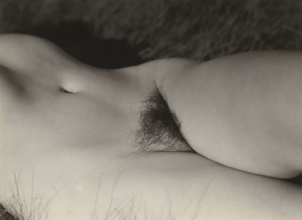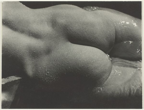 Curator: Standing here before Paul Strand’s photograph “Rebecca,” circa 1922, rendered in gelatin silver print, I'm struck by its starkness. Editor: Starkness is one way to put it. My immediate impression is…intimate, maybe even vulnerable. It's so close up. There's this overwhelming physicality, an unromanticized depiction of the female body. Curator: Absolutely. And, remember, this piece emerges within early modernism; Strand, deeply influenced by Alfred Stieglitz, sought to capture the essence of his subjects through a direct, unmanipulated approach, almost documentary. In the '20s, it was really disruptive, challenging established, idealized nudes that saturated painting. Editor: Disruptive, for sure. It forces a confrontation with the real, unfiltered. There's something almost defiant in its gaze, even without a face visible. It's subverting that traditional male gaze where women's bodies are positioned for, or made palatable to, that gaze. It almost completely removes the male gaze! The very textures of the flesh, the almost clinical lighting, create this raw encounter. Curator: The high contrast adds to that raw quality. But Strand’s work went beyond pure representation, and he was attempting to uncover something fundamental, a truth perhaps? Editor: A truth that might include challenging social conventions regarding nudity and the female form. The deliberate and unedited visibility demands that viewers grapple with complex ideas about representation, power, and who gets to frame it all. What were the societal reactions to such raw vulnerability? Curator: Early reactions varied, certainly provoking discourse, with some viewers embracing its avant-garde ethos and honesty. And while some of his work sparked censorship debates later on, with photography being relatively new and constantly fighting for respect, that kind of artistic courage becomes a dialogue about what is okay in photography as an art form. Editor: Looking at "Rebecca" now, I'm reminded that art constantly forces conversations about ourselves, not just about aesthetics or beauty. Strand invites questions on voyeurism, acceptance, the political dimension of the naked form itself. It's so potent and thought-provoking. Curator: Agreed. Strand captured in this intimate photograph so much more than the surface. It prompts me to really question how art can be both intensely personal and undeniably universal. Editor: Yes. Ultimately, I think it pushes us to examine how we see and, maybe more importantly, *why* we see in such specific ways. It makes one reconsider perceptions within these bodies.