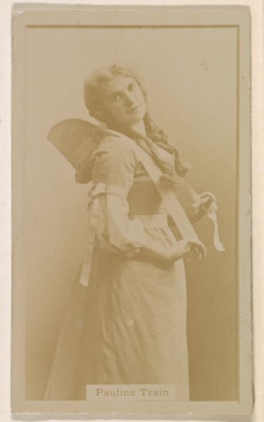 Editor: This is "Annie St. Tel, from the Actresses series," a photograph from 1890 by Kinney Brothers, part of a promotional set for Sweet Caporal Cigarettes. The sepia tone gives it a vintage feel, and Annie's pose, draped in frills and lace, seems both performative and vulnerable. How do you interpret this work within its historical context? Curator: This image, while seemingly innocuous, reveals fascinating layers when viewed through a critical lens. Actresses, like Annie St. Tel, were becoming public figures, but their representation was often mediated through the male gaze, in this case, further complicated by its use in advertising tobacco. Consider the power dynamics at play. The photograph idealizes a specific kind of femininity to sell a product, embedding women’s images within consumer culture. How do you think this impacted the perception of women at the time? Editor: It’s interesting to consider that she's being objectified to sell cigarettes. I guess I hadn’t really considered the relationship between gender, commerce, and public image here. Did these types of images affect perceptions about labor, since she’s an actress, and that’s her job? Curator: Exactly. And it’s essential to acknowledge the class implications too. Tobacco use was marketed towards diverse demographics, and this portrait, circulating inexpensively, could potentially blur social boundaries, democratizing access to aspiration and desire. How might this type of commercialized imagery reinforce or challenge existing hierarchies related to class? Editor: So, it's not just about the actress or the cigarette; it's about what the image *does* culturally, reinforcing or disrupting social structures! Curator: Precisely. Examining these seemingly simple images unlocks dialogues about gender, labor, consumption, and the intricate construction of identity in the late 19th century. Editor: I see. Now, when I look at it, I’m not just seeing a pretty picture, but the workings of a complex social landscape. Thanks!