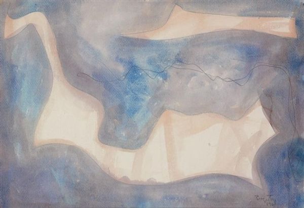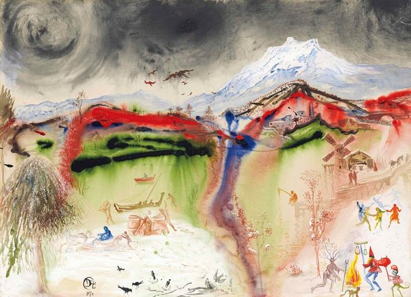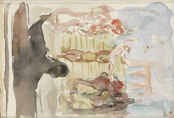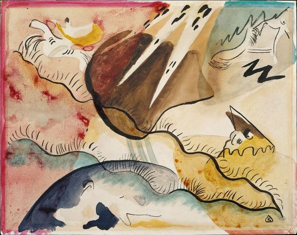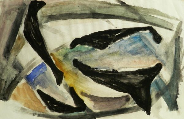Editor: Here we have Charles Demuth's "Fish Series, No. 5" from 1917, done in watercolor. It's dreamlike, almost like an underwater scene observed through fog. What can you tell me about this painting? Curator: The loose application of watercolor in "Fish Series, No. 5" is really telling. Demuth, often associated with Precisionism, surprises us here with its apparent spontaneity. But look closer at the pigments used, at the very material of the work. The diluted washes of color would have been readily available, a manufactured product accessible even then. How does this accessibility impact the perceived value of the piece, when compared to the laborious craft traditions of, say, oil painting? Editor: That's an interesting perspective. So, you're suggesting the chosen medium reflects something about value and access? Curator: Precisely. Consider also the 'subject matter' – fish, a readily available, consumable object. The act of depicting them in a 'high art' format, using mass-produced materials, blurs those artificial boundaries. This subversion challenges traditional artistic hierarchies. Think about where Demuth purchased these materials. Did that vendor offer a singular source of products? What conditions were those products assembled within? Editor: I see what you mean. It’s not just about the fish, it's about how accessible art-making was becoming and what materials the market had to offer. I'd never considered that the means of production played such a prominent role. Curator: And further, this wasn't a singular study, or rendering, Demuth called it "Fish Series, No. 5." Which leads one to infer an intentional pursuit of an objective, one born within the materials and the making. Editor: Wow, I'm definitely seeing this piece in a new light. Thanks for sharing your materialist perspective! Curator: My pleasure. Art history isn’t just about dates and titles, but the economic realities that shaped the very creation of the object.