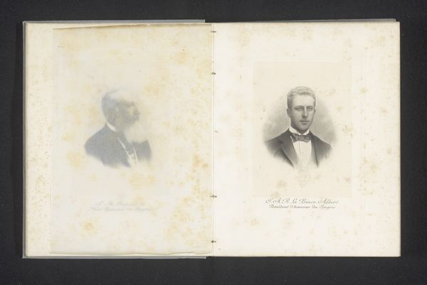 Curator: Welcome. Here we have François Aubert's "[Three Portraits]" from 1867. The work before you, combining gelatin-silver and albumen prints, offers an interesting case study in photographic portraiture of the time, showcasing, through an aesthetic and physical mounting format that also carries semiotic weight. Editor: They appear as floating ovals! Almost as if the photograph has cut and pasted them together… But there's an immediate sense of seriousness in the visages, a sobriety of purpose radiating outward. The man on the right with the faint facial hair gives me a particularly modern impression, actually, in his eyeglasses. Curator: You are right, there is an undeniable gravitas but Aubert’s artistic intention remains in its original form of display as a product available for social consumption within bourgeois structures. Photographic albums became increasingly prevalent at this period, becoming fixtures in affluent homes, acting as artifacts representing socio-economic stature. The poses themselves are representative of how elite bourgeois subjects in that period consciously styled and represented themselves for posterity. Editor: And there's that slightly off-putting brown tint that ages them further, adding to the feeling of temporal distance. As portraiture, it is more fascinating, as far as I am concerned, by what it chooses not to show – lives briefly captured by the gaze, but elusively contextualized. They are set in ovals of nothingness... framed by absences. Curator: These images reveal not just individual faces but wider shifts in visual culture. The rise of photography democratized portraiture somewhat, though its accessibility remained uneven, still reflecting societal inequalities in practice. To think of their arrangement also opens doors onto ideas surrounding collecting and display within burgeoning institutional or pseudo-institutional frameworks. Editor: I appreciate that, in viewing their faces, their image quality is startling given its age. Despite my projection, which imagines the limitations or struggles they must have endured, one would only be imagining... But they speak back to this with an authority, the very presence you speak of as they defy what assumptions could be easily attached. Curator: Thinking through these various lenses adds richness and depth, doesn't it? Thanks for sharing that critical insight with me today. Editor: My pleasure. These early portraits are like historical palimpsests… they continually encourage the uncovering of fresh meanings with each generation of viewing.