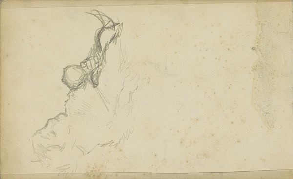 Cornelis Springer created this evocative figure study, now held at the Rijksmuseum, with delicate lines that capture more than mere form. The figure is crouched forward, seemingly in a posture of either deep contemplation or distress. Note the barely-there sketch of the face, tilted downward, and the reaching hand—a gesture laden with potential meanings. This motif echoes across centuries; it’s reminiscent of supplicating figures in ancient Roman reliefs, or even mourning figures that symbolize grief in medieval art. The hand, in particular, is a powerful signifier. Think of its presence in Renaissance depictions of Christ carrying the cross or in scenes of lamentation. Here, in Springer's sketch, the hand becomes a vessel, a locus of unspoken emotion, connecting the past and present. The non-linear trajectory of this symbol is fascinating; resurfacing, evolving, and taking on new meanings in different historical contexts.