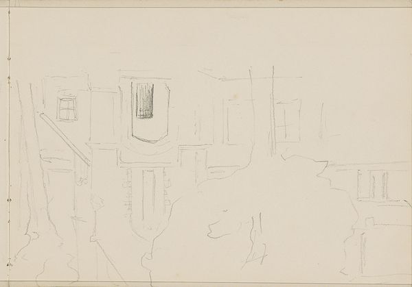 Adrianus Eversen created this drawing of buildings, using delicate pencil lines to suggest form and structure. The composition presents a cluster of buildings, rendered with an almost ghostly lightness, evoking a sense of transience. The buildings are outlined with minimal detail, challenging our perception of architectural stability, and presenting a semiotic interplay of what a building represents versus its actual presence. Eversen destabilizes the traditional notion of architectural drawings, which typically focus on precision and detail, instead focusing on a fleeting impression. The sketchy lines refuse to be confined to the buildings, extending into the surrounding space, blurring boundaries and creating an ambiguous sense of space. The drawing exists not as a definitive statement but as an invitation. The ambiguity of the lines invites us to explore the nature of representation and the shifting grounds of reality. It is a quiet reminder that art's essence lies in its capacity to question and transform how we perceive the world.