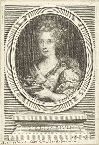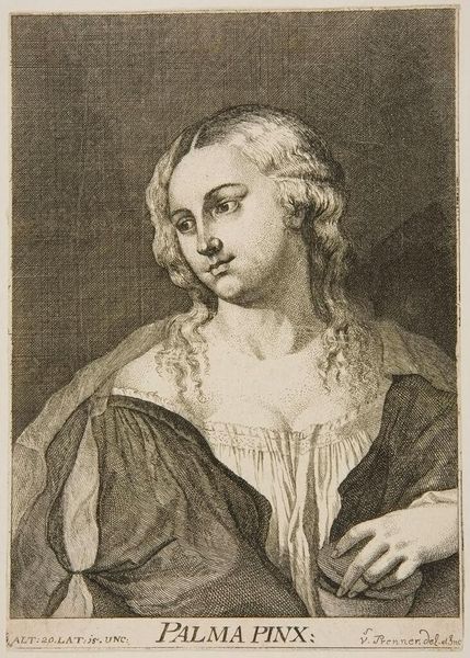 This is Wenceslaus Hollar's portrait of Margaret Lemon, made using etching, a printmaking technique notable for its detailed lines and tonal gradations. The composition, primarily vertical, focuses intently on Lemon, whose gaze is directed towards the viewer, creating a sense of direct engagement. The rendering of light and shadow across her satin dress and delicate facial features highlights Hollar's technical skill and the print's materiality. There is an interplay between the detailed texture of her hair and the smoother surfaces of her skin and clothing. Semiotically, her adornments - the pearl necklace and the flowers - function as signs of her status and beauty, aligning her with contemporary ideals of femininity. Yet, the directness of her gaze disrupts traditional objectification, suggesting a more assertive presence. This tension between objectification and assertion destabilizes fixed interpretations, inviting viewers to reconsider conventional categories of portraiture and representation. The work exists as a site of ongoing interpretation.