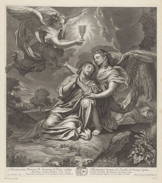 "Heilige Franciscus ontvangt de stigmata" is an engraving made by Francesco Villamena around the turn of the 17th century, a period marked by religious fervor and artistic innovation. Villamena, working within the sphere of late Mannerism and early Baroque, captures a pivotal moment in the life of Saint Francis. The image depicts Francis receiving the stigmata, the wounds of Christ, in a dramatic, almost theatrical setting. The interplay of light and shadow heightens the emotional intensity, drawing the viewer into Francis's spiritual experience. But who was Saint Francis for the people of Villamena's time? What did his devotion and receipt of the stigmata represent in a society grappling with its own spiritual identity and the shifting tides of religious reform? Consider the emotional weight of this scene – the agony and ecstasy of divine communion, made visible through the pierced flesh. It serves not only as a testament to faith but also as a mirror reflecting the personal struggles of the devout during a time of profound religious and social change. The image invites a deep, personal reflection on faith, suffering, and the search for meaning in a world undergoing transformation.
