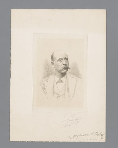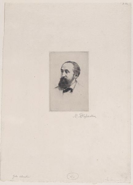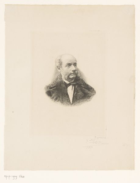 This is Frans Lauwers' portrait of Désiré Delcroix. The black and white drawing encapsulates the rigid formality of bourgeois society in the late 19th century. Lauwers, active during a time of significant social transformation, presents Delcroix, a man whose identity is so intertwined with his societal role that it seemingly erases other aspects of his personhood. There's a tension here - the soft, almost vulnerable quality in Delcroix's eyes set against the stark, unyielding lines of his suit and the formal expectations of portraiture at the time. The signatures below the portrait feel almost like a contract, solidifying the sitter's place in society. This image reflects how identity can be both a performance and a prison, shaped by the expectations of history and class. It makes us wonder, what parts of ourselves do we choose to reveal, and what parts are dictated by the world around us?