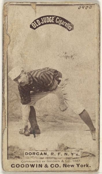This baseball card of Burns, a third baseman for Chicago, was made by Goodwin & Company as part of their Old Judge Cigarettes series. It’s a photograph, reproduced in countless identical copies. Think about the labor involved, not just in taking the picture, but in the industrial processes that made this image so widely available. These cards weren't meant for a museum. They were cheap promotional items included in cigarette packs. The picture would have been taken using a large format camera to produce a glass plate negative, which then would have been used to produce this image. The photograph itself is sepia-toned, giving it a nostalgic feel, even when new. It’s printed on thin paper stock, emphasizing its disposability. In its original context, the card was an advertisement, an encouragement for working-class consumers to partake in a habit that would enrich the manufacturers. This wasn't high art, but a cog in the machine of commerce, reflecting the industrialization and mass production of both images and consumer goods.